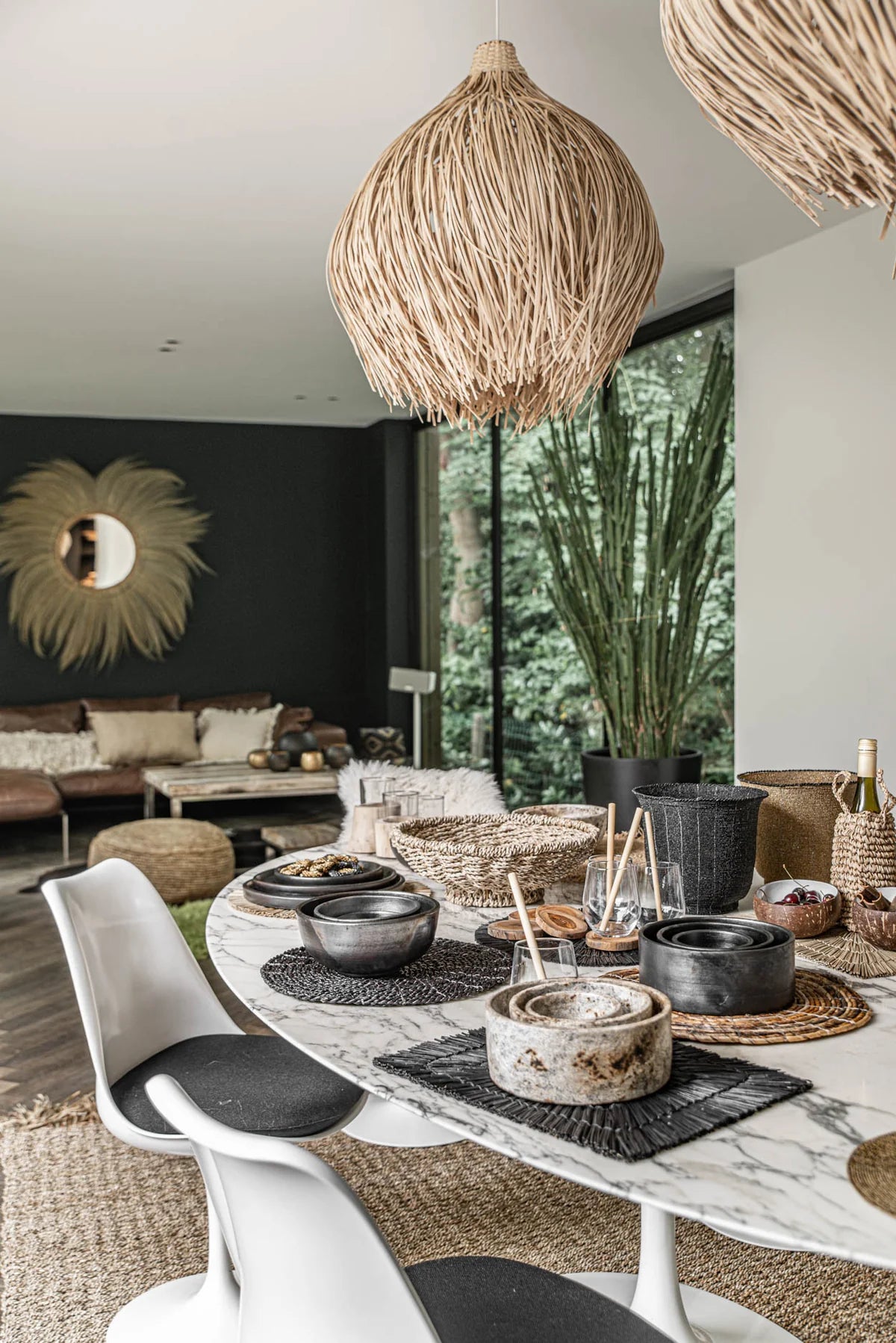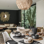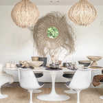 The Natural Shaggy Fig Light Shade. Handmade from natural rattan, each shade is unique, showcasing the character and craftsmanship of the materials.