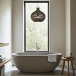 A fabulous alternative to the traditional Chandelier.  Placed above dining tables or lounge spaces, its shape filters light into soft, ambient patterns that enrich the atmosphere. The wide dimensions ensure generous coverage, while its natural rattan weave keeps it lightweight for effortless installation and lasting resilience.