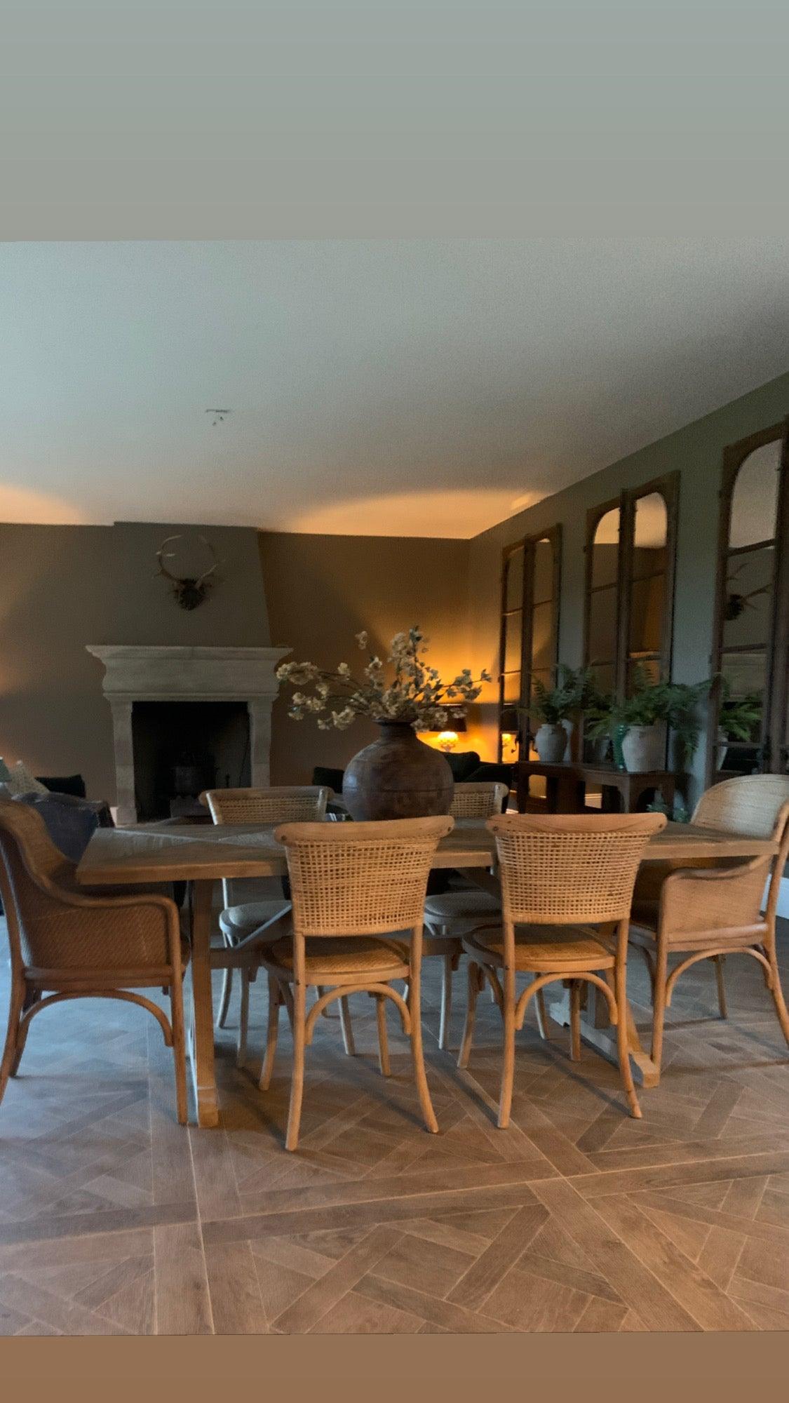 In a classic French design with elegantly shaped legs and woven wicker seat this is a timeless piece and can be used for dining, office or desk and as an occasional piece.