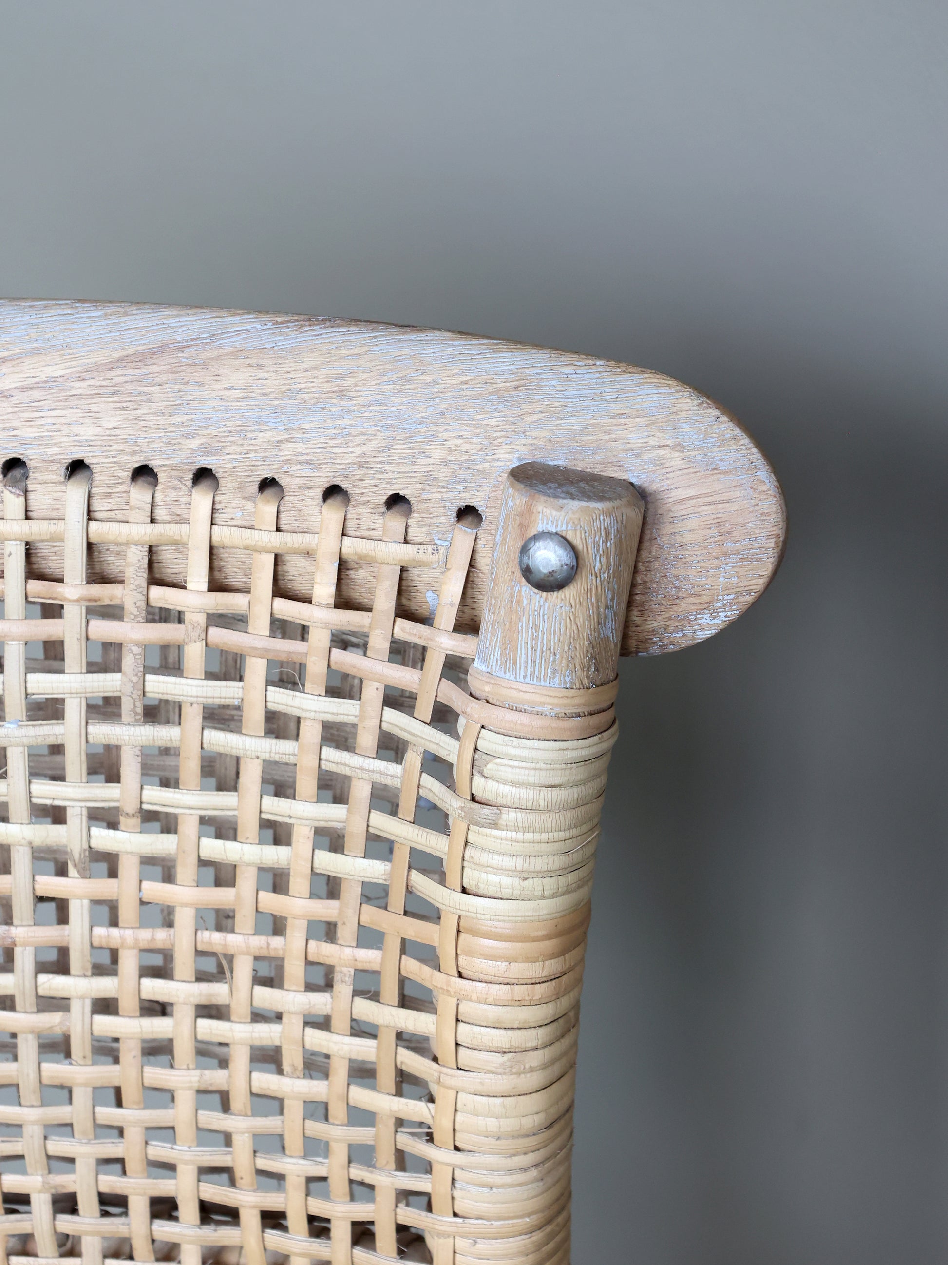 In a classic French design with elegantly shaped legs, all important foot rest and woven wicker seat.